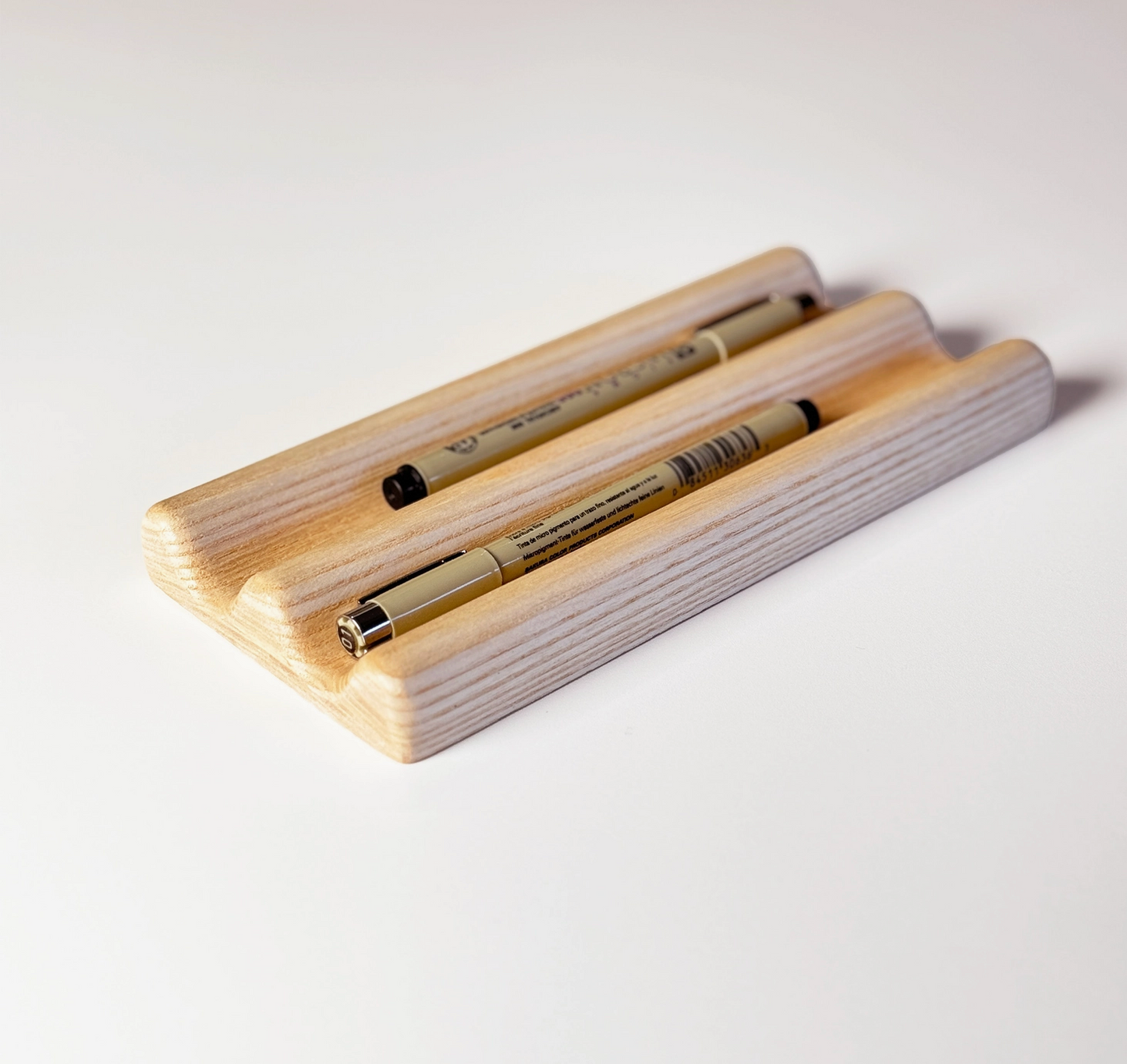 A minimal tabletop organizer designed to bring order and intention to your workspace. Crafted from solid hardwood, this two-row holder keeps pens, pencils, precision knives, and other design tools neatly arranged and within reach.