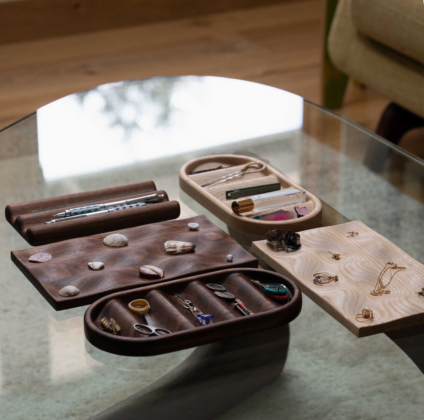 Wood is a natural material. Grain pattern and tone will vary from piece to piece, even within the same species—making each organizer unique.