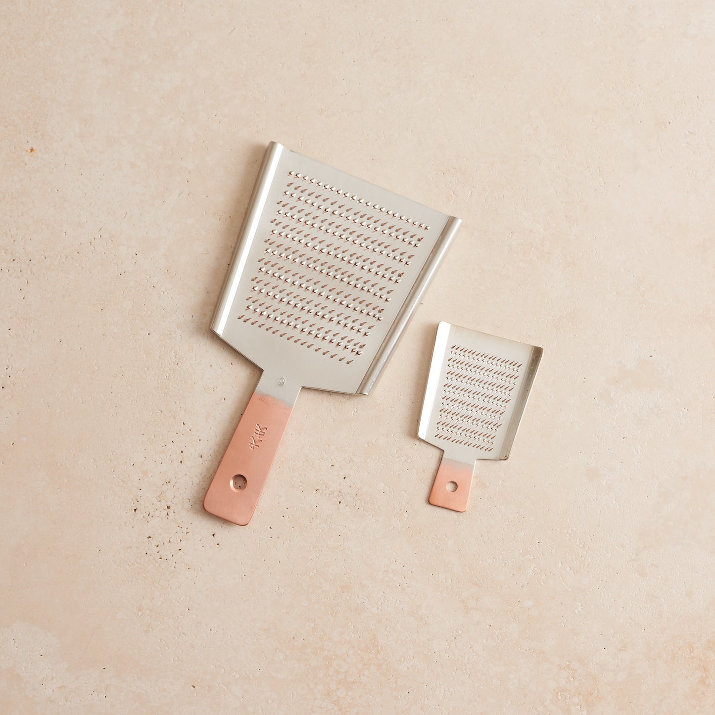 These copper graters are hand stamped by craftspersons in Japan. Their beauty is not unmatched to their function in the kitchen. Whether you are grating fresh ginger, garlic or yummy nutmeg on top of your homemade impromptu latte you'll feel like you're slicing though butter.